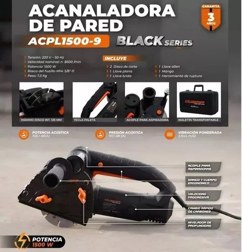 ACANALADORA PARED CONCRETO LUSQTOFF ACPL1500-9 1500W+2DISCOS ACPL1500-9 La amoladora Lüsqtoff es una herramienta versátil, que permite realizar diferentes trabajos con una terminación profesional. Por eso, es una excelente opción sumarla a tu taller o caja de herramientas. Velocidad progresiva, acop...