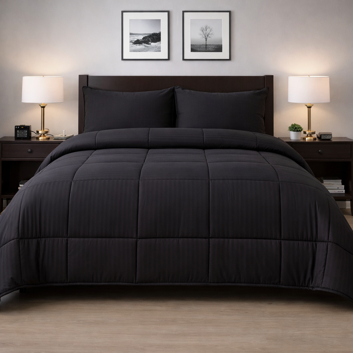 Somos UNA CASA MIL HOGARES, y disfrutamos acompañarte día a día en tu hogar con productos de la mayor calidad, super funcionales y perfectos para decorar ambientes!! Acolchado King con fundas Dobby Rayas - Medida 250x280 cm. Sirve para King. - Incluye 2 fundas de almohada de 70x50cm. - Ideal para ca...