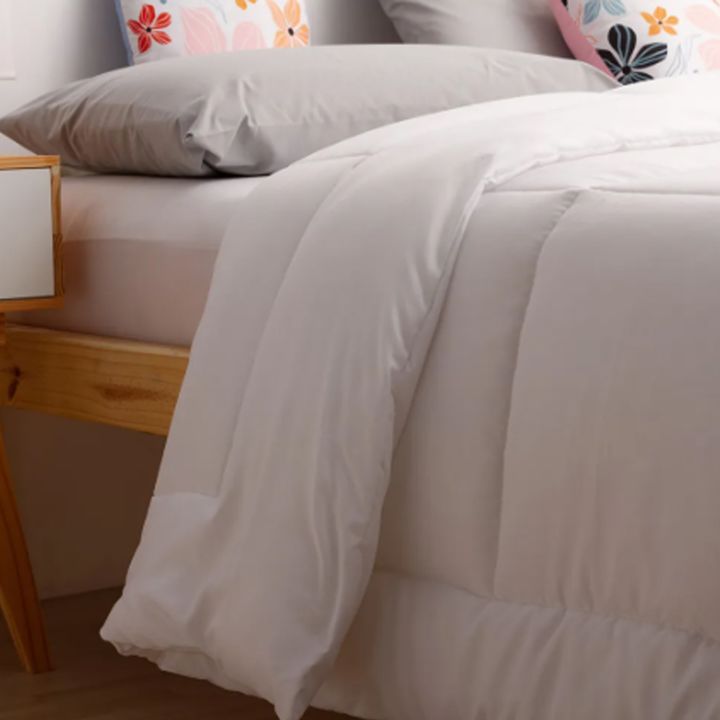 Acolchado dos plaza y media. Reversible. Microfibra. Relleno de guata virgen. No incluye fundas de almohadones. Medidas: Largo: 2.20 mts. Ancho: 2.00 mts.