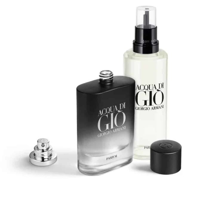 Recarga para Acqua Di Gio Homme Parfum REFILLABLE de 40 ml, 75 ml y 125 ml. La nueva fragancia profunda e intensa, capturando las poderosas sensaciones de la naturaleza. Una fragancia aromática amaderada que combina bergamota con esencia de romero y notas de incienso para crear una intensidad vibran...