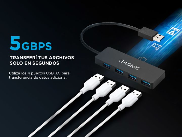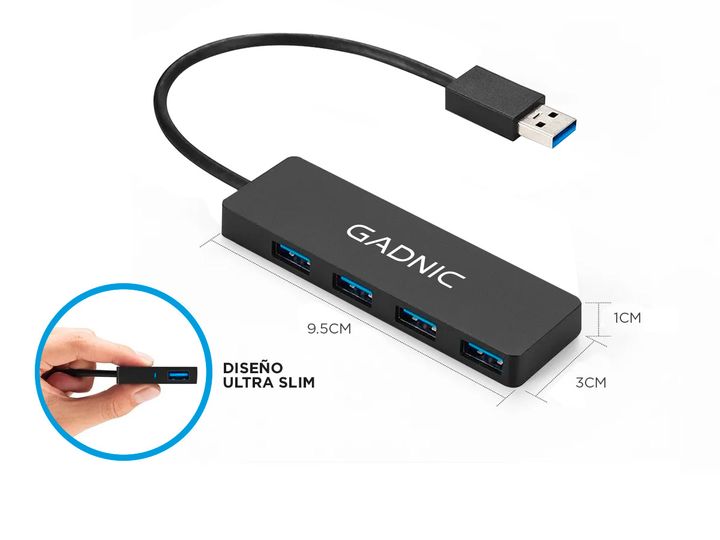 Más puertos Convierte uno de los puertos USB de tu computadora en cuatro. Transferencia de datos superveloz Transfiera datos a velocidades de hasta 5 Gbps. ¡Eso es lo suficientemente rápido como para transferir una película Full HD en sólo segundos! Supremamente portátil Tiene solo 1 cm de grosor y ...