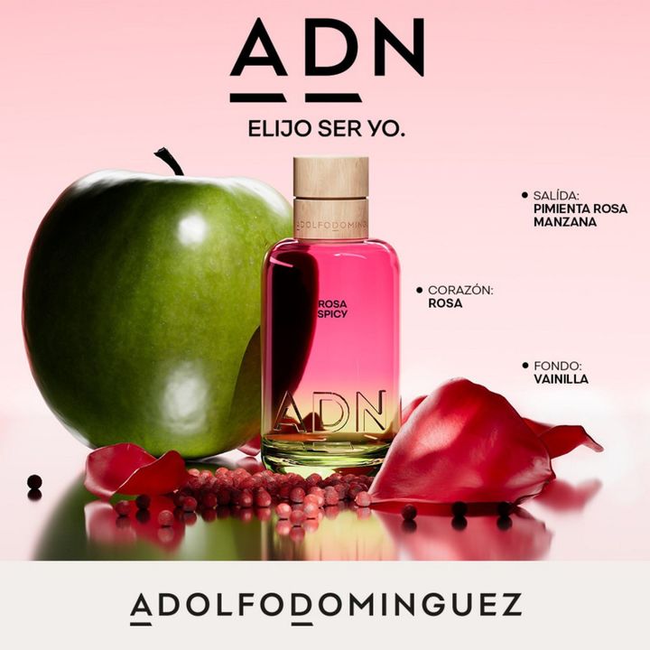 ADN es la nueva colección de perfumes de Adolfo Domínguez. Perfumes que potencian tu identidad, utilizando aceites esenciales que evocan una emoción única en cada fragancia. Elige ser tú, con ADN de Adolfo Domínguez. Rosa Spicy, contiene aceite esencial de Rosa, con propriedades que estimulan tu cre...