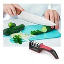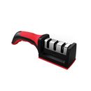 Fabricado en plástico inyectado duro. Con apliques de goma roja antideslizante. Etapas de afilado: 1 - Piedra de afilado inicial. 2 - Alisado de precisión cerámico. 3 - Pulido cerámico. Rápido y efectivo. Base antideslizante. Mango ergonómico. Medidas 21.5 x 5 x 6cm. Peso 150 gr.