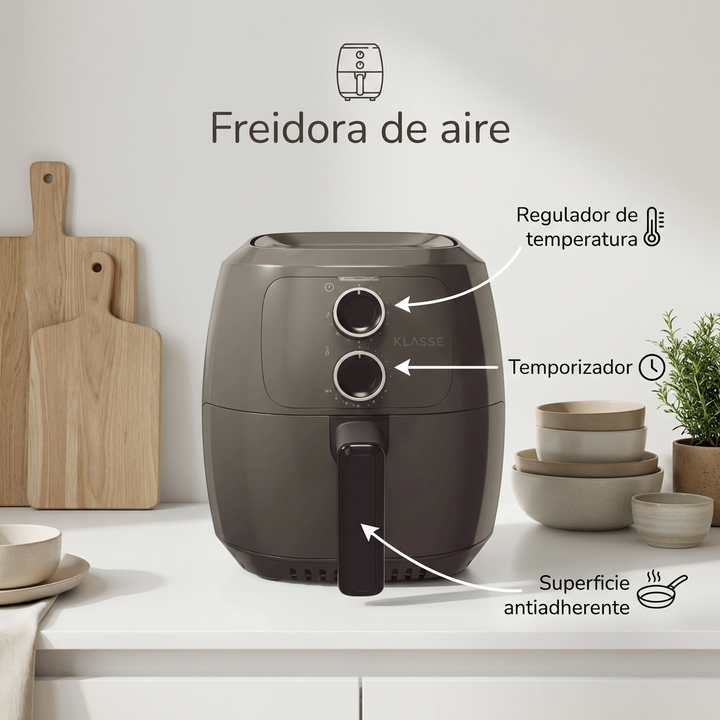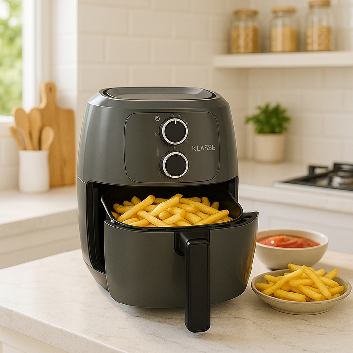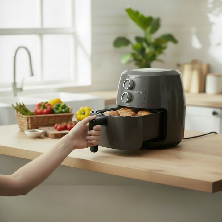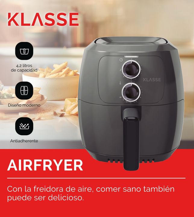 La freidora de aire Klasse permite cocinar papas, carnes y vegetales con poco o sin aceite de forma práctica en el hogar.