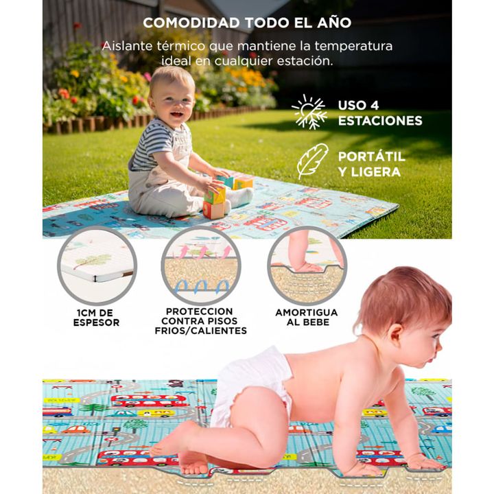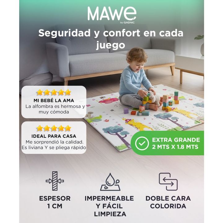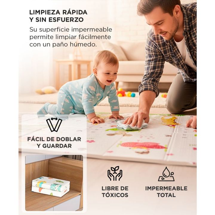 Material ecológico y seguro: espuma XPE de alta densidad, libre de BPA, ftalatos y olores. Impermeable y fácil de limpiar: superficie resistente al agua, se limpia con un paño húmedo en segundos. Diseño reversible 2 en 1: doble cara con ilustraciones educativas y coloridas para estimular el aprendiz...