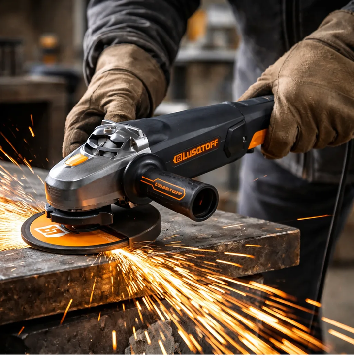 AMOLADORA ANGULAR 180MM 2400W LUSQTOFF BLACK SERIES 50HZ La Lusqtoff AML2407-10 Black Series es una amoladora angular robusta de 180 mm, con una potencia máxima de 2400 W y 220 V. Diseñada para trabajos intensos, cuenta con mango antivibración, arranque progresivo, traba de husillo y funciones de se...