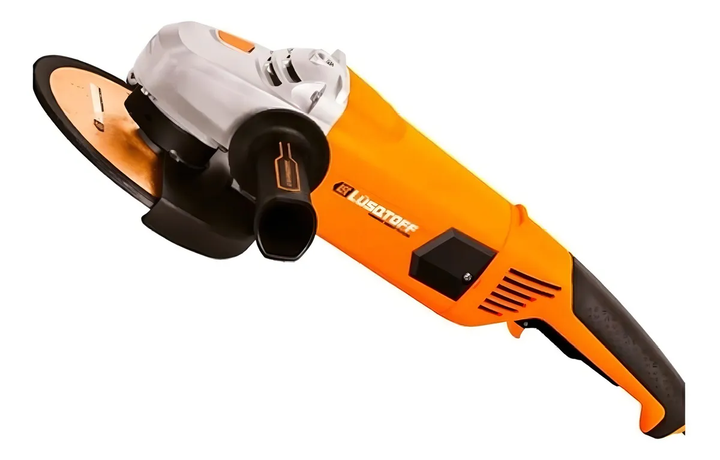 AMOLADORA ANGULAR LUSQTOFF AML22008 DE 50 HZ COLOR NARANJA 2200 W 220 V Y ACCESORIOS • Con proteccion antipolvo. • Acceso rápido a carbones. • Gatillo hombre muerto. • Sistema de encendido en 2 posiciones (pulsador + traba). ESPECIFICACIONES • Tensión: 220 V ~ 50 Hz • Potencia: 2200 W • Velocidad: 8...
