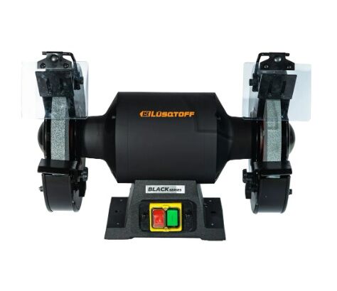 Tensión: 50 HZ • Velocidad: nO 2980/min • Tamaño de piedra: 250x25x20 mm • Diámetro del eje: 20 mm. • Base de hierro • Protectores antichispas • Antivibraciones • 3 años de garantía INCLUYE • 1 piedra de grano #36 • 1 piedra de grano #60 • 2 protectores antichispas • 2 soportes de trabajo