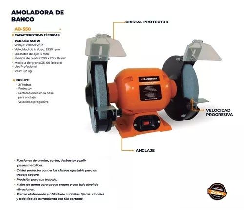La amoladora Lüsqtoff es una herramienta versátil, que permite realizar diferentes trabajos con una terminación profesional. Por eso, es una excelente opción sumarla a tu taller o caja de herramientas. Equipá tu casa o taller y ¡hacelo vos mismo! Esta amoladora de banco se caracteriza por ser fija. ...