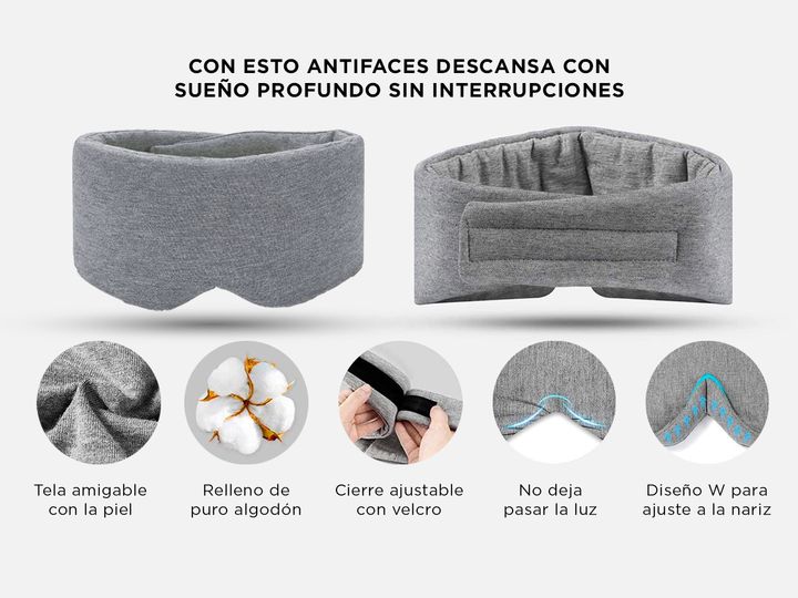 ¡Descubre la comodidad y el descanso profundo con nuestro Antifaz para Dormir! Esta maravillosa máscara para dormir está diseñada para ayudarte a conciliar el sueño de manera rápida y eficiente, sin importar la hora del día o el lugar en el que te encuentres. Fabricada con materiales de alta calidad...