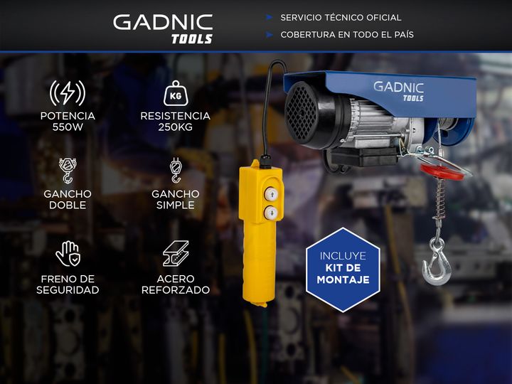 ¡GADNIC Tools presenta su nueva línea de Aparejos eléctricos! Este Polipasto eléctrico está hecho de un motor de cobre puro de alta calidad que garantiza alta potencia, bajo consumo y gran seguridad. El cable de acero reforzado es mucho más seguro y confiable que los otros del mercado, el mismo cuen...
