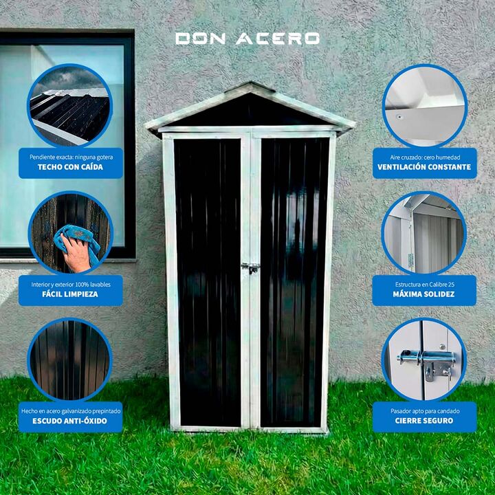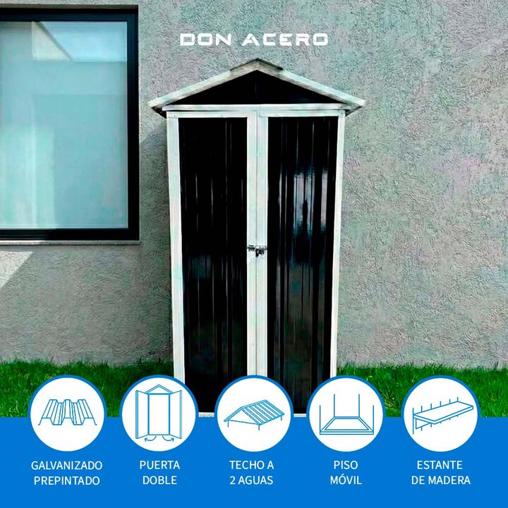 Don Acero presenta este depósito de alta calidad, fabricado en acero galvanizado prepintado, ideal para almacenar herramientas, bicicletas, equipos de jardinería y otros objetos de uso diario. Con una vida útil garantizada de entre 8 y 10 años, libre de mantenimiento
