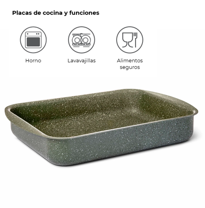 TVS FUENTE PARA HORNO 35X27 NATURA INDUCTION SKU: 8000807044940 Bandeja rectangular para horno Natura TVS, fabricante italiano líder en utensilios de cocina antiadherentes. Descripción Producto fabricado en Italia Sartén antiadherente rectangular perfecta para todas las preparaciones de repostería d...