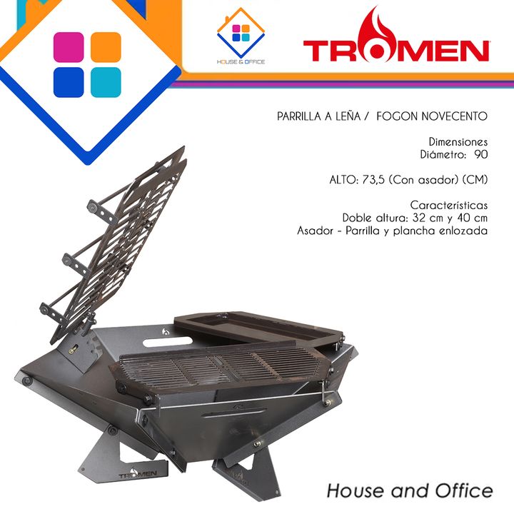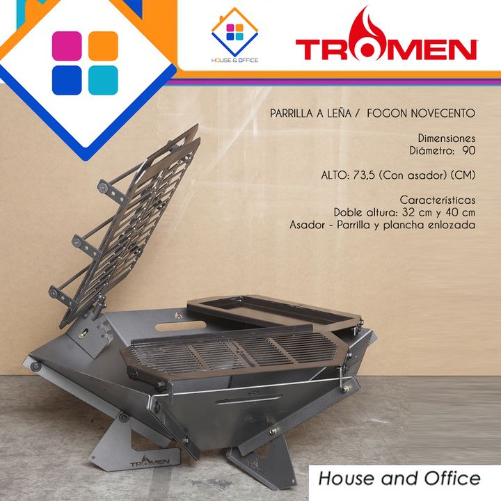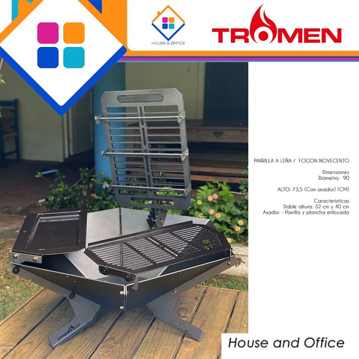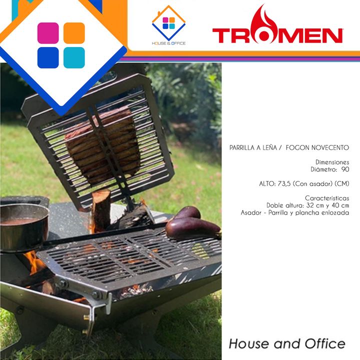 ASADOR TROMEN FOGON NOVECENTO CRUZ PARRILLA PLANCHA Marca:Tromen Código: 02-000-068T PARRILLA A LEÑA / FOGON NOVECENTO Dimensiones Diámetro: 90 ALTO: 73,5 (Con asador) (CM) Características Doble altura: 32 cm y 40 cm Asador - Parrilla y plancha enlozada -Marca: Tromen -Modelo: Fogon Novecento -Largo...