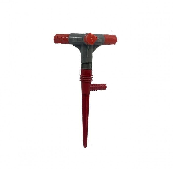 Aspersor de riego con 3 puntas con 4 orificios y estaca. de plastico. Salida de agua regulable. Riega de forma sencilla. Excelente resultado para tu jardin. Alcance minimo - Alcance maximo: 1 m - 1.5 m. Tipo de aspersor: Mecanico.