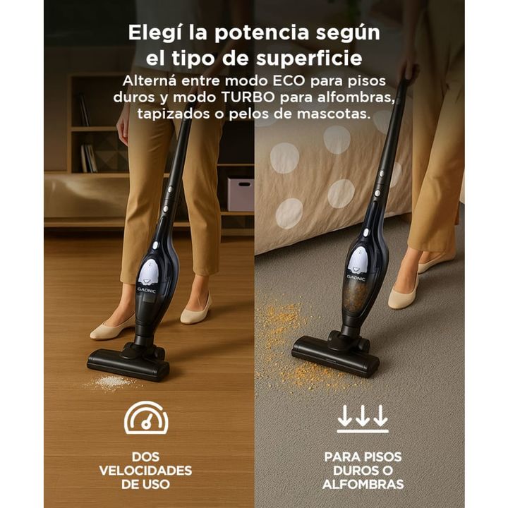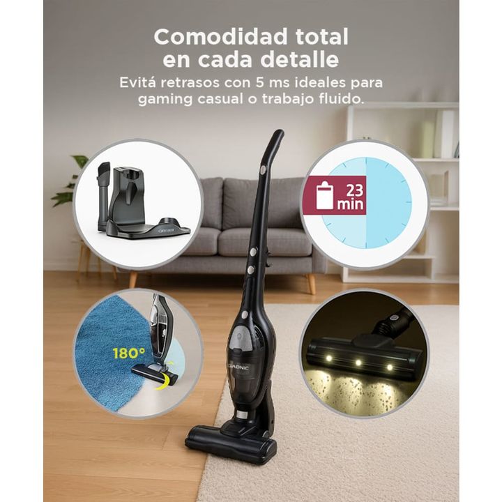 Gadnic presenta la nueva Aspiradora Vertical inalámbrica: Succión Ciclónica: Motor potente con capacidad de succión avanzada para atrapar partículas finas y grandes. Autonomía Prolongada: Batería recargable de iones de litio con hasta 23 minutos de funcionamiento continuo. Modo Doble de Limpieza: Aj...