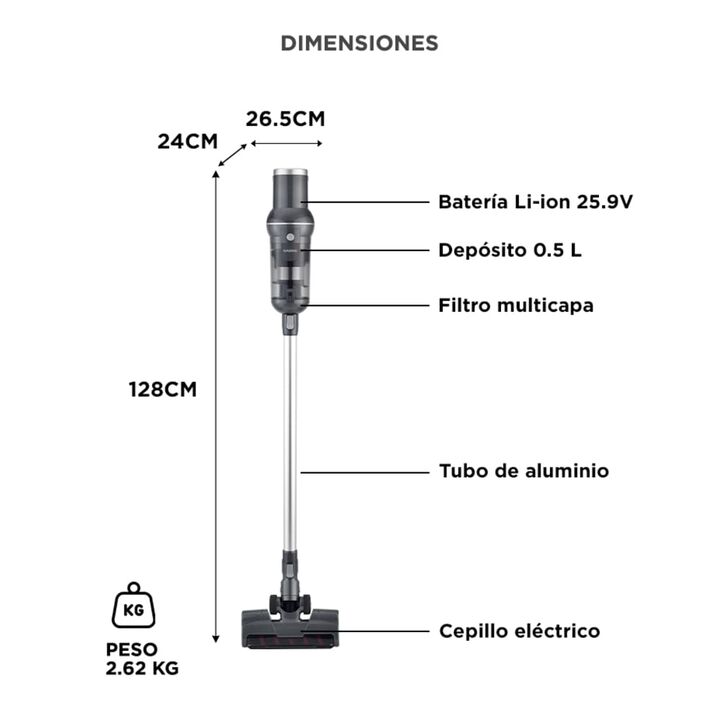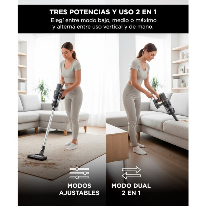 Motor BLDC de alto rendimiento Su motor brushless ofrece mayor eficiencia, menos desgaste y una succión estable de 16 kPa para limpieza profunda en todo tipo de superficies. Autonomía real según tu necesidad Obtené hasta 37 min en modo bajo, 20 min en modo medio y 10 min en potencia máxima. Ideal pa...