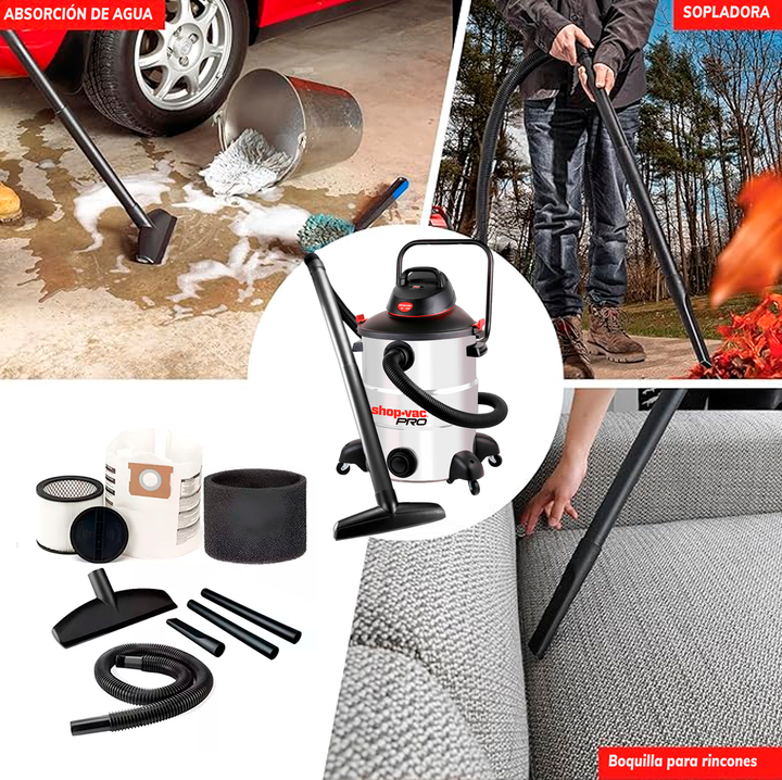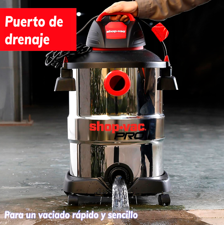 SHOP VAC 60L 1800W ACERO INOXIDABLE ASPIRADOR EN SECO Y HÚMEDO 220V SKU: 59722202 Características - Voltaje: 220-240V - Capacidad: 60L - Potencia: 1800W Máx. - Soplador/uso en húmedo/seco 3 en 1 - Recipiente resistente de acero inoxidable. - Puerto de drenaje grande Accesorios - Manguera de 38 mm de...