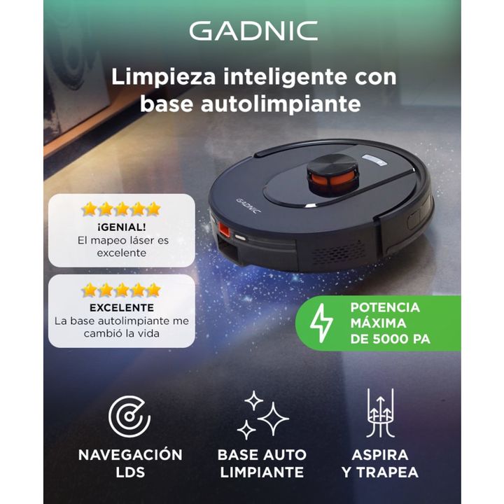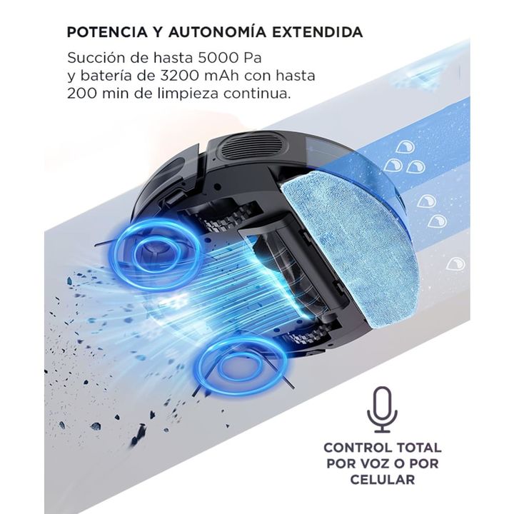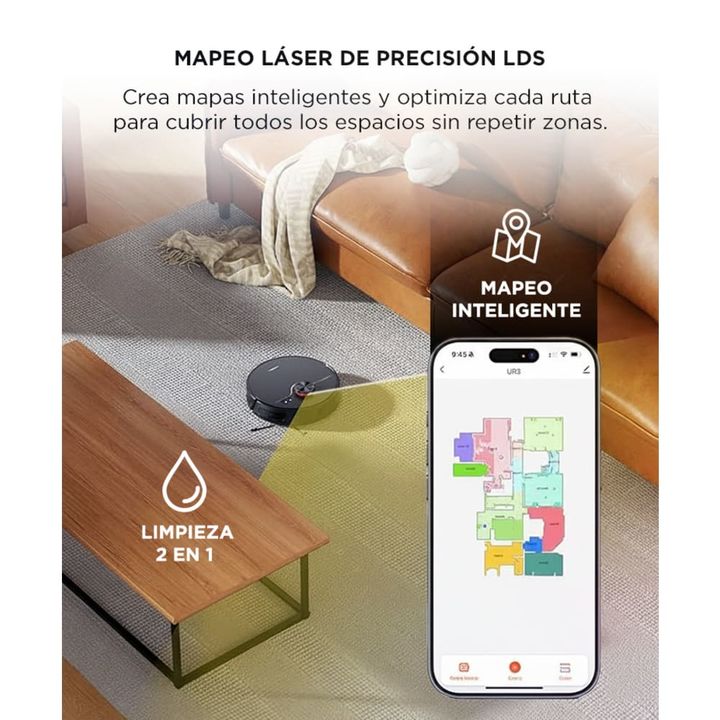 Navegación láser LDS inteligente: Mapea tu hogar en tiempo real con rutas ordenadas y cobertura total, sin repeticiones. Base autolimpiante 3.2 L: Vaciado automático con detección de bolsa y potencia de 650W para máxima higiene. Potencia de succión 5000 Pa: Limpieza profunda en pisos duros y alfombr...