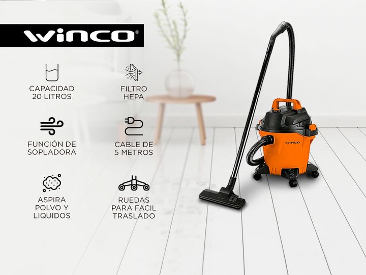La aspiradora Winco W531 es una solución versátil para la limpieza en el hogar u oficina. Con capacidad para polvo y líquidos, esta aspiradora de 20 litros es ideal para diferentes tipos de tareas de limpieza. Además, cuenta con una función de sopladora que puede ser útil para eliminar el polvo en á...
