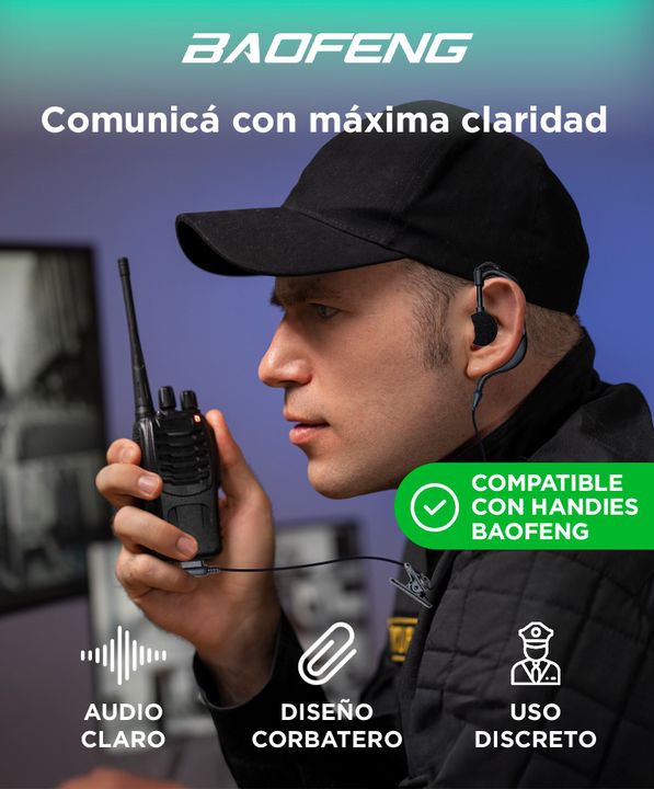 Compatibilidad universal Baofeng: Funciona con múltiples modelos de handies Baofeng, ideal para comunicación fluida en distintos equipos. Diseño corbatero discreto: Clip firme para fijar en ropa, pensado para seguridad, logística o eventos profesionales. Audio claro y confiable: Micrófono integrado ...
