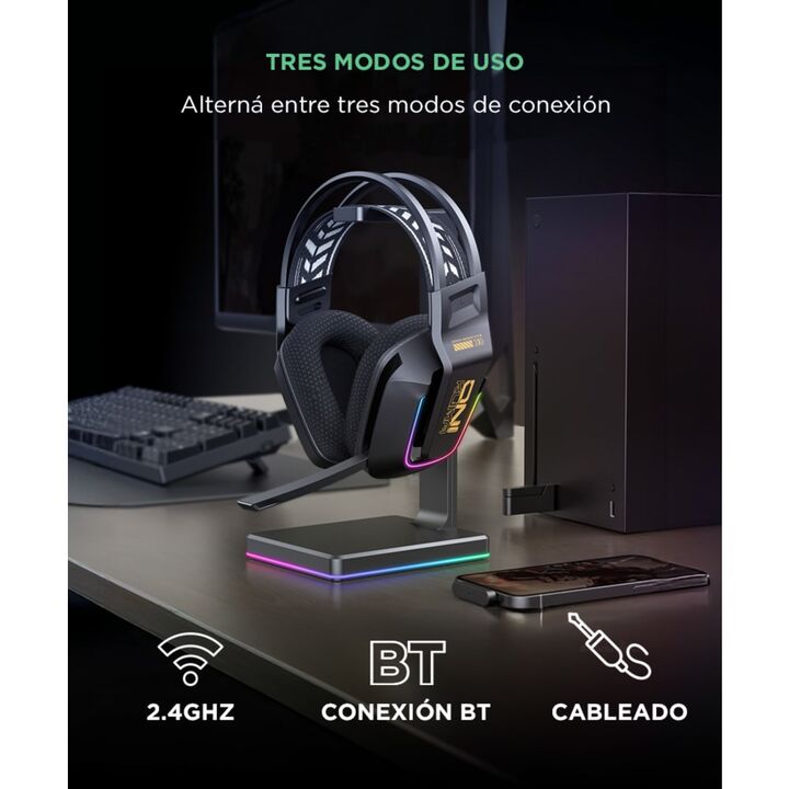 Versatilidad total para jugar en cualquier plataforma: Los auriculares gamer Onikuma GT828 ofrecen cuatro modos de uso que permiten conectarlos de forma inalámbrica o cableada según el dispositivo. Esta flexibilidad los vuelve ideales para PC, consolas y uso diario sin depender de un solo formato de...