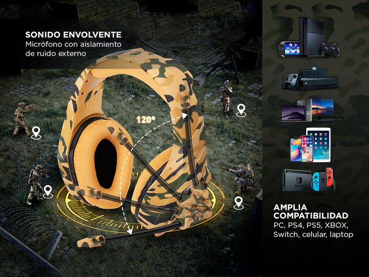 Sumergíte en la experiencia de juego definitiva con nuestros auriculares gamer. Experimenta un sonido envolvente que te sumerge por completo en el mundo virtual, mientras que la gran compatibilidad garantiza que puedas disfrutar de tus juegos favoritos en múltiples plataformas. Con un micrófono flex...