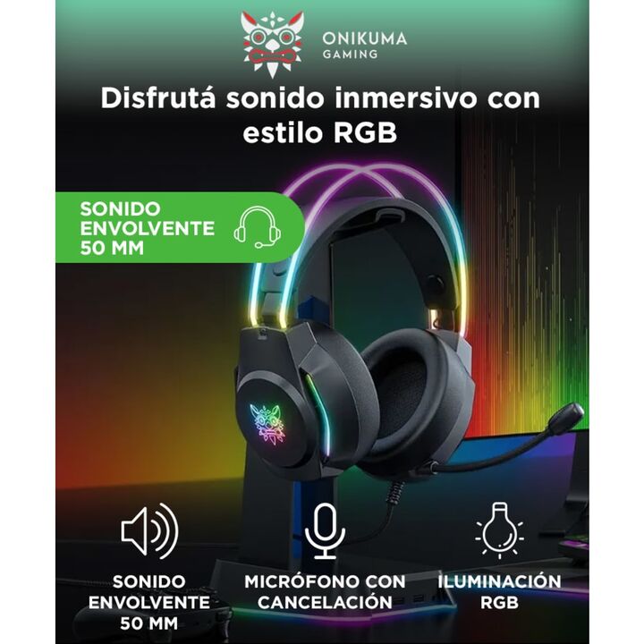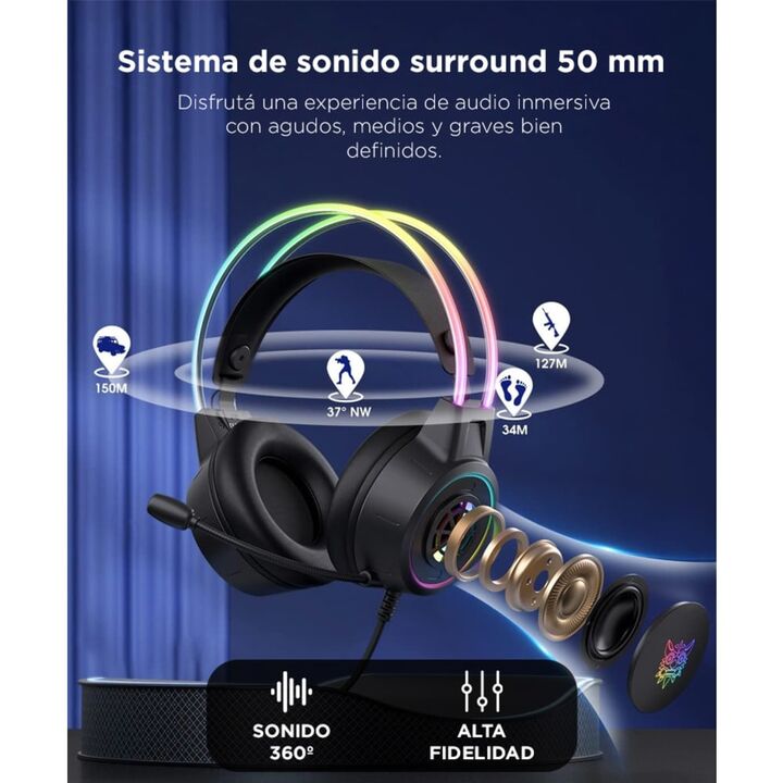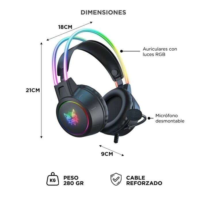 Diseño RGB gamer: Con luces LED y orejas de gato integradas para destacar tu setup. Sonido envolvente: Drivers de 50 mm para juegos, películas y música. Micrófono de calidad: Omnidireccional con reducción de ruido para voz clara. Máxima comodidad: Almohadillas suaves y banda ajustable para largas se...