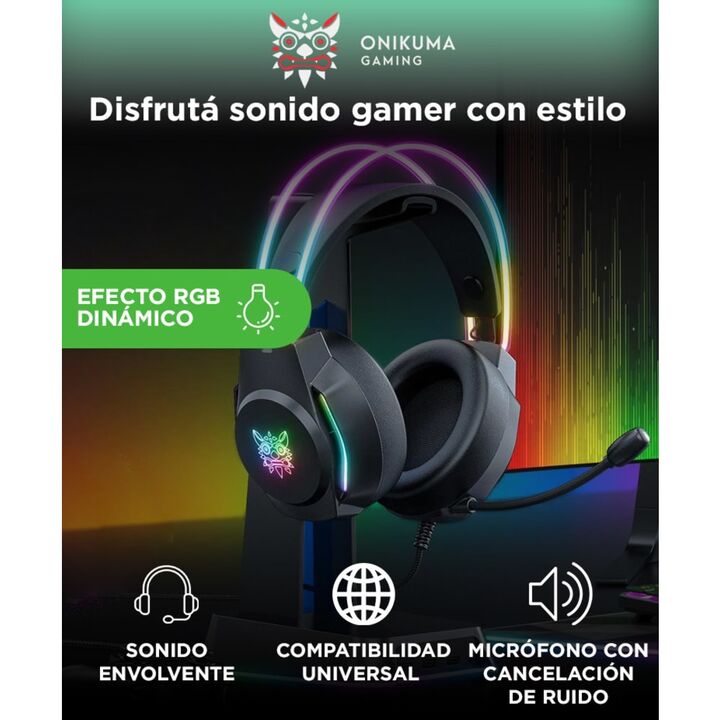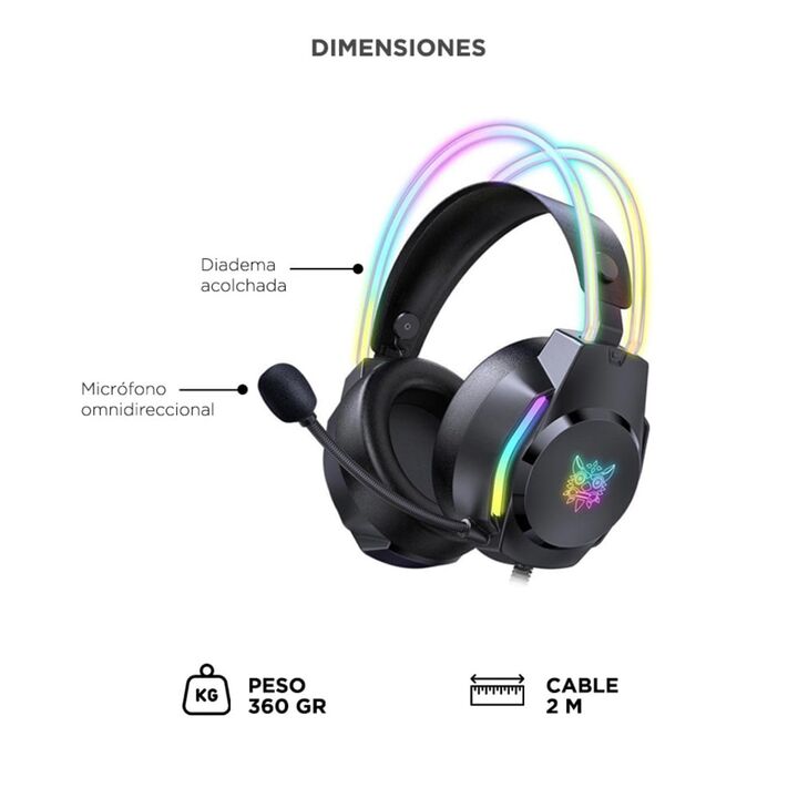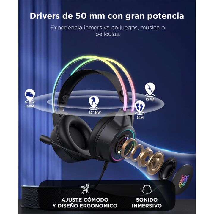 Diseño RGB gamer: Con luces LED y orejas de gato integradas para destacar tu setup. Sonido envolvente: Drivers de 50 mm para juegos, películas y música. Micrófono de calidad: Omnidireccional con reducción de ruido para voz clara. Máxima comodidad: Almohadillas suaves y banda ajustable para largas se...