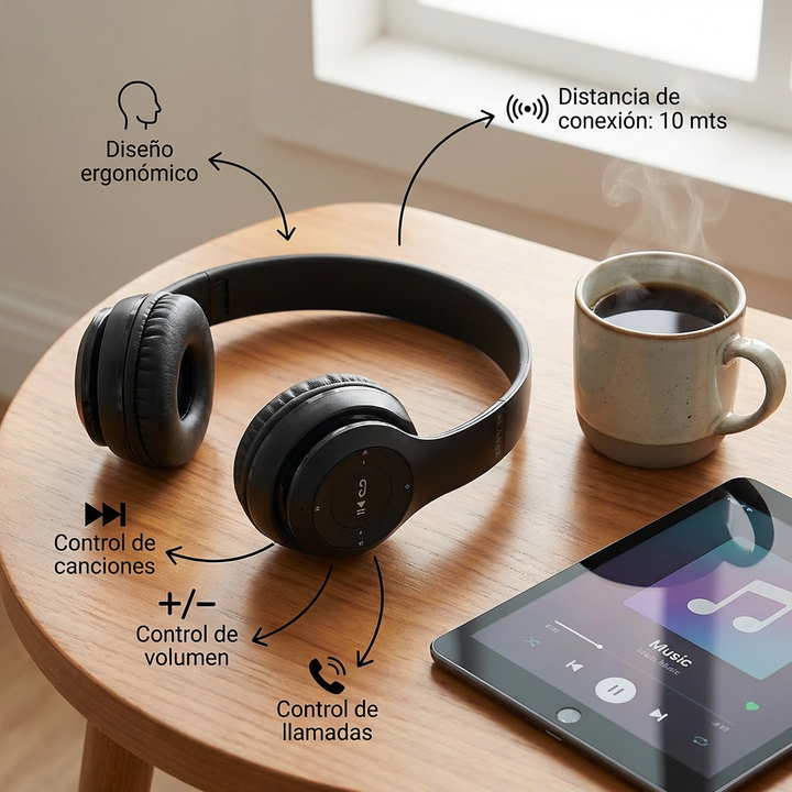 On Ear | Auriculares | Versión Bluetooth: 5.0 • Tamaño del parlante: 40mm • Impedancia: 32 ohms • Distancia de transmisión: 10 m • Autonomía aproximada: 4-5 h • Capacida...