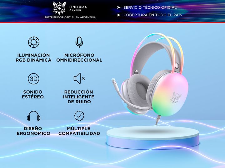 Onikuma presenta los nuevos Auriculares Para PC Con Micrófono y Luz: Excelente Sonido: Equipados con controladores de 50 mm, brindan un sonido nítido y detallado, ideal para detectar hasta los más mínimos sonidos en el juego. Micrófono Incorporado: El micrófono omnidireccional garantiza una comunica...