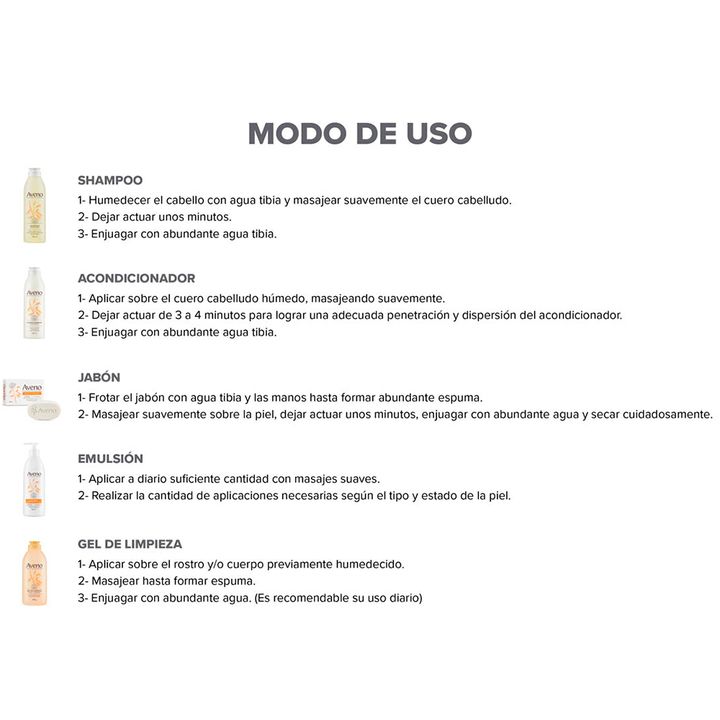 Componentes Acondicionador Aveno Capilar Protege Cuero Cabelludo 250 Ml Código: 7793742004353 | SKU: 009001 x 1 uni Shampoo Aveno Andrómaco Avena Piel Sensible 250ml SKU: 009003 x 1 uni Emulsion Aveno Corporal Hidrata Humecta Piel Sensible 400 Ml Código: 7793742004391 | SKU: 009006 x 1 uni Jabon Com...