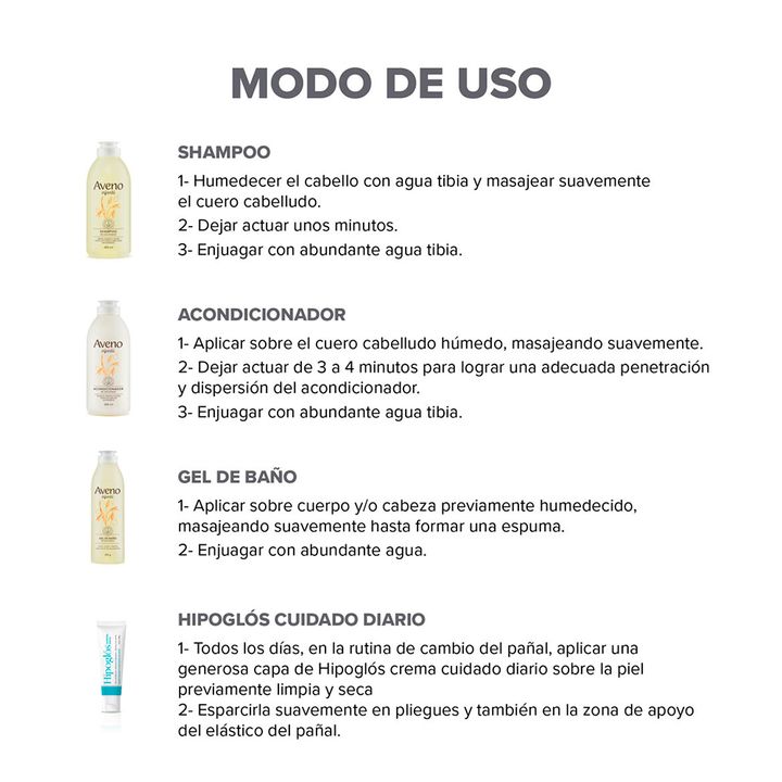 Componentes Acondicionador Aveno Infantil Suave Dermatitis Atopica 250ml Código: 7793742005442 | SKU: 009002 x 1 uni Shampoo Aveno Infantil Andromaco Piel Sensible 250 Ml SKU: 009004 x 1 uni Hipoglos Crema Cuidado Diario Vitamina B5 30gr Código: 7793742002984 | SKU: 012004 x 1 uni Aveno Infantil Gel...