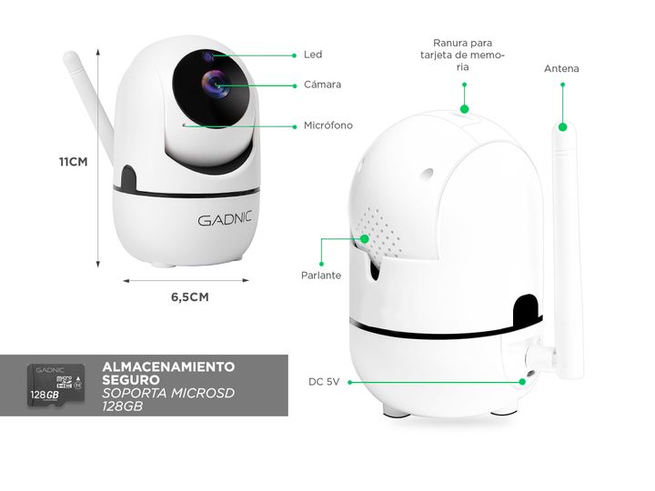 ¡Disfrutá la tranquilidad de saber que tu bebe está seguro las 24hs del día con Baby Call Cámara De Seguridad Gadnic SX9! Cuenta con conexión wifi y con una instalación muy fácil: solo necesitás descargar la app, conectarte al wifi y ¡listo! Posee 6 led IR de alto poder que te permiten ver hasta 15 ...