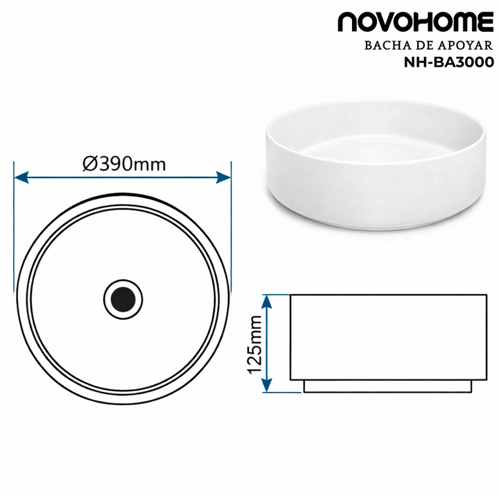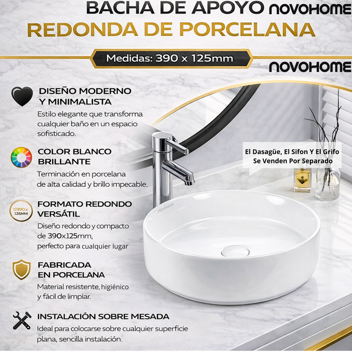 NOVOHOME BACHA DE APOYO SLIM REDONDA BLANCA SKU: NH-BA3000 Dale un estilo moderno y elegante a tu baño con esta bacha de apoyar Novohome, ideal para espacios contemporáneos. Fabricada en porcelana de alta calidad, ofrece una excelente terminación en blanco esmaltado, fácil de limpiar y resistente al...