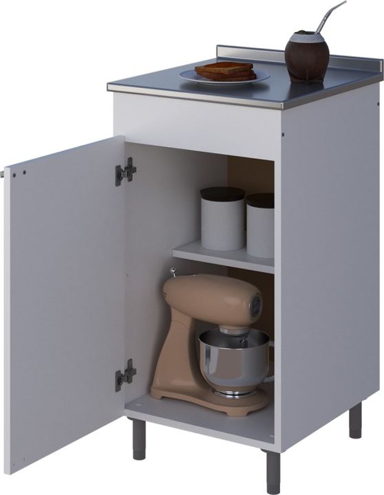 BAJO MESADA 40CM 4054 BLANCO MUEBLES ORLANDI -1 puerta -1 estante -Patas regulables en altura -Melamina de 15 mm -Medidas (AnxAlxProf)400x800x470 mm -Color Blanco -FOTO ILUSTRATIVA / NO INCLUYE TAPA MESADA DE ACERO INOXIDABLE -Modelo 4054 -Garantía fabricante 12 meses -Origen Argentina