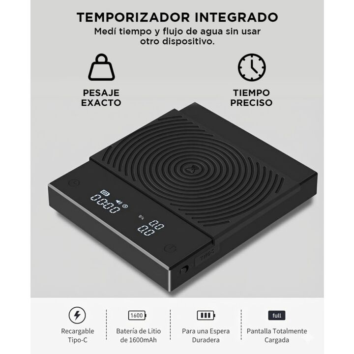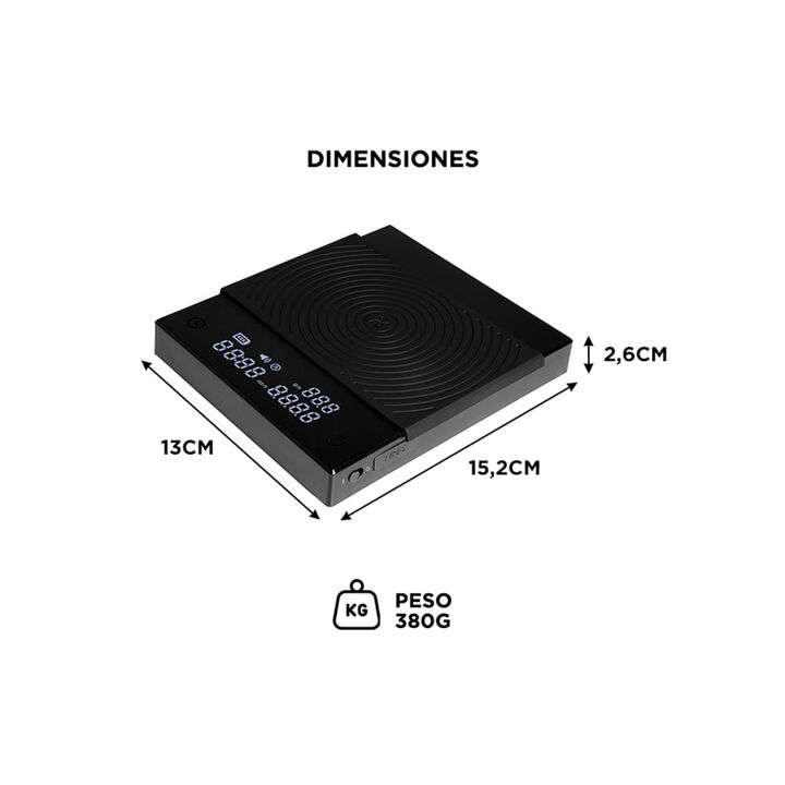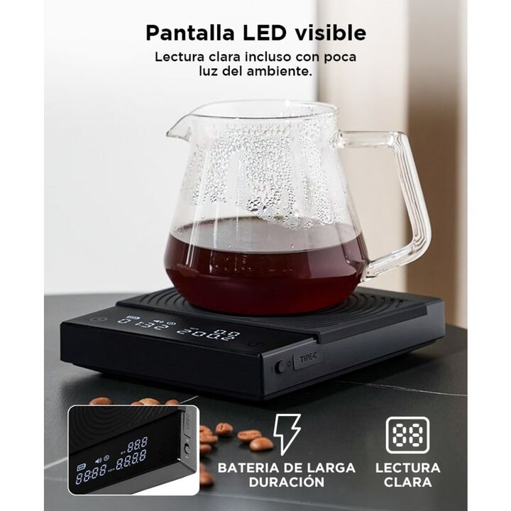 Timemore presenta la nueva Balanza de Café Plus con Temporizador: Precisión en el Pesaje: Equipado con una plataforma de pesaje de alta precisión, garantiza mediciones exactas de café y agua, permitiéndote reproducir tus recetas favoritas con consistencia. Temporizador Incorporado: La función de tem...