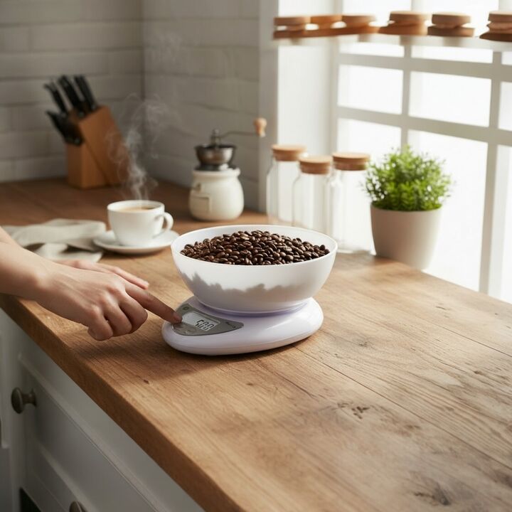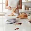 La balanza digital de cocina con bowl klasse permite pesar ingredientes con practicidad y buena precisión en la cocina.