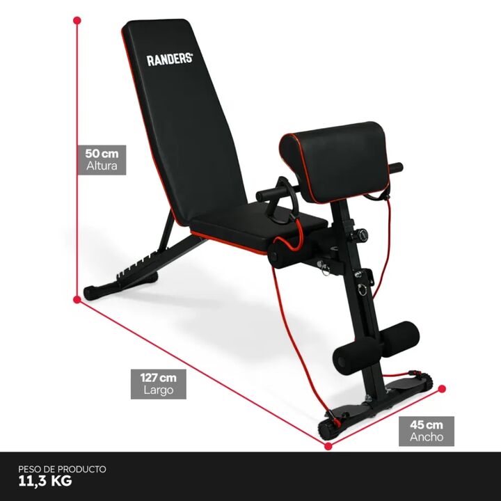 Banco de entrenamiento Multiangular Randers ARG-210 El banco multiangular Randers ARG-210 es una excelente opción para armar tu espacio de entrenamiento en casa. Su estructura de caño estructural de acero le da firmeza y estabilidad, soportando hasta 120 kg con peso en uso. El asiento y respaldo est...