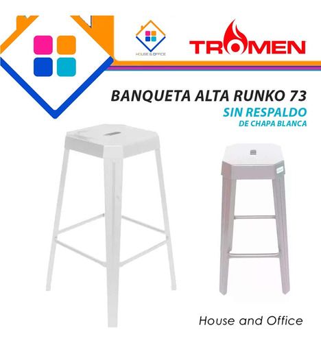 BANQUETA RUNKO 73 TROMEN ALTA SIN RESPALDO DE CHAPA BLANCA Marca:Tromen Código: 06-000-023T . LÍNEA RUNKO ESTILO + FUNCIÓN + COMODIDAD Disfrutalas en galerias, quinchos y espacio semicubiertos como patios, terrazas, balcones y jardines ERGONÓMICAS + RESISTENTES Ideal para locales gastronómicos y com...