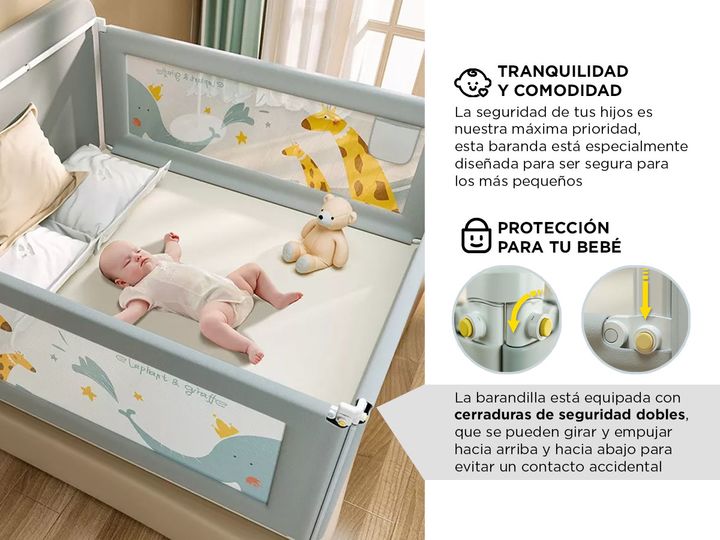 Introducí tranquilidad y comodidad con nuestra Baranda de Seguridad de Cama para niños. La seguridad de tus hijos es nuestra máxima prioridad, por lo que esta baranda está especialmente diseñada para ser segura para los más pequeños. Su estructura sólida y resistente garantiza que tu pequeño esté pr...