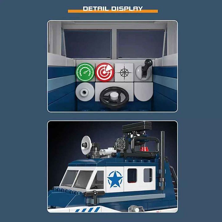 Set Barco Policía Mould King 10084: 413 piezas, seguro y duradero. Fomenta creatividad y juego simbólico. ¡Armá diversión hoy!