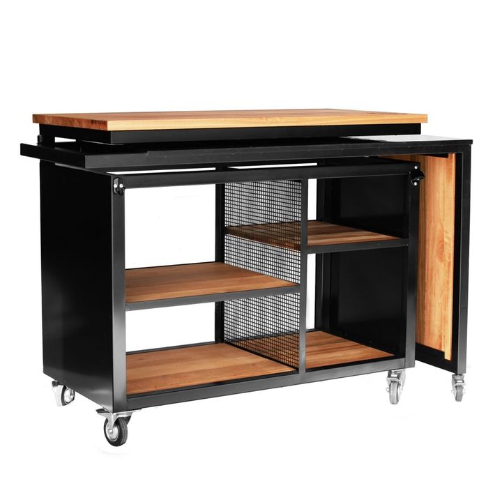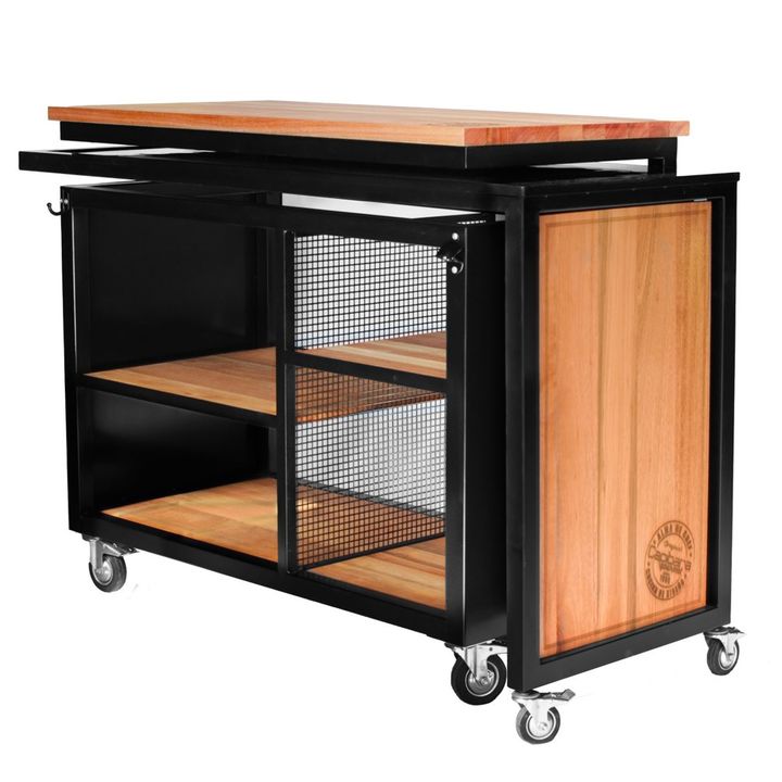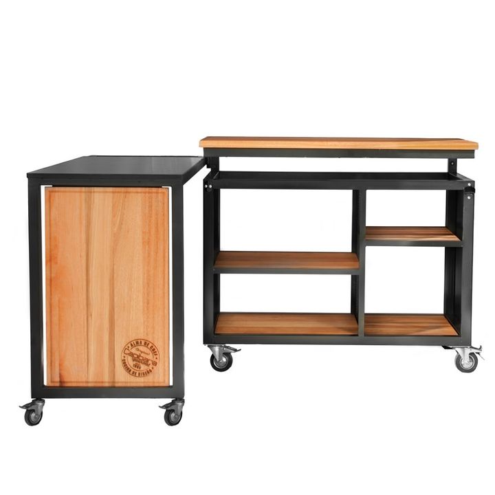 MATERIALES: Madera de Leuka compensada y metal reforzado con terminación con pintura poliuretánica. Barra suplementaria con porcelanato.
