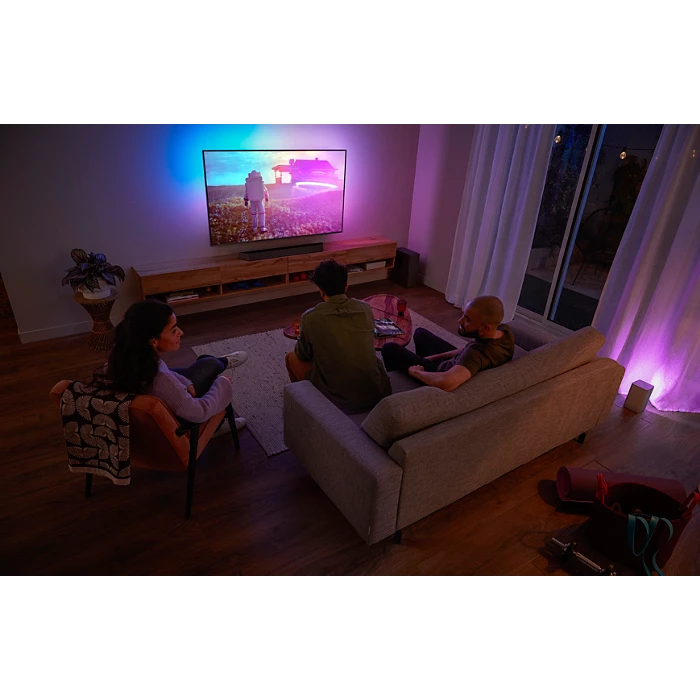 La barra de sonido One con subwoofer de conexión inalámbrica te ofrece una auténtica experiencia de cine. Los altavoces de canal central dedicados proporcionan una gran claridad vocal, y Dolby Atmos ofrece un sonido Surround increíble e inmersivo. Esta barra de sonido ofrece un sonido potente y rico...