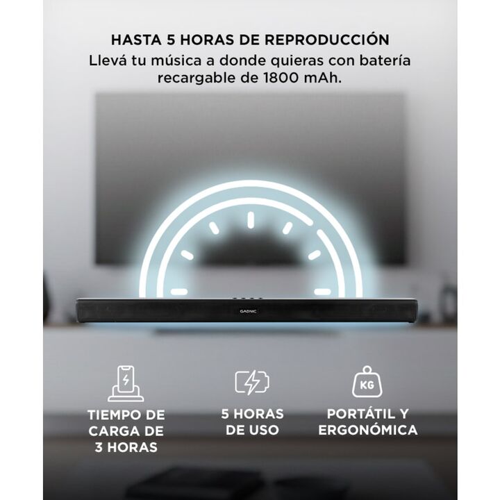 Experimentá un sonido excepcional en cualquier lugar con nuestra Barra de Audio GADNIC. Diseñada para ofrecer potencia, conectividad y versatilidad, este altavoz es perfecto para el hogar, la oficina o cualquier espacio donde deseas disfrutar de una calidad de sonido impresionante. Su diseño compact...