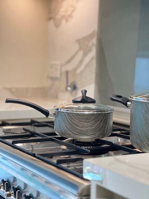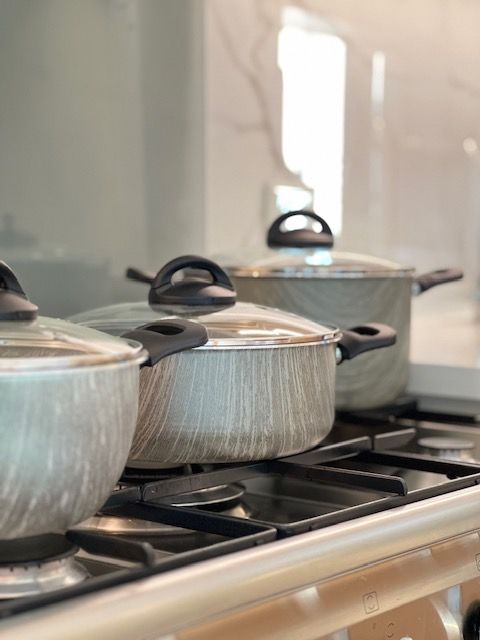 Batería Antiadherente linea Terra Premium de 1,8 mm de espesor compuesta por : Aluminio recubierto con antiadherente de 1,8 mm de espesor con mangos Baquelita negra Set compuesto por : Cacerola 24 cm con tapa de vidrio templado con orificio para salida de vapor, 1,8 mm de espesor. Altura de olla : 9...
