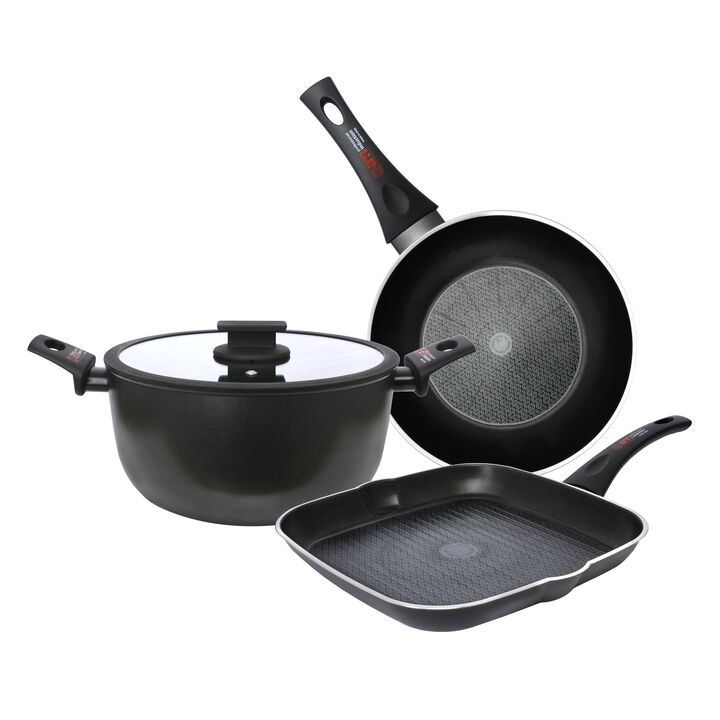 Bateria de cocina de la mas alta calidad , origen Italiana Aluminio puro 99,5%, espesor 3,5 mm / 4mm , forjado para una perfecta difusión del calor y una mejor cocción de los alimentos. PFOA FREE ( Cocina sana ) / NICKEL CADMIUM LEAD FREE ( Revestimiento Salvanatura) / AM SALUS EXTRA STONG ( Revesti...