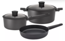La batera de aluminio Hudson incluye una olla con tapa de vidrio 18 cm cacerola con tapa de vidrio 24 cm y sartn 24 cm. Cuentan con 2 capas antiadherentes y son aptos para cocina a gas cermica elctrica halgena.