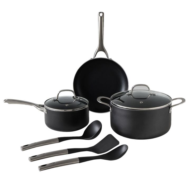 Bateria de Cocina Oster Palladium 8 Piezas 127707.08 Este conjunto de elementos esenciales para el día a día presenta una construcción duradera de aluminio forjado que se cocina de manera uniforme e interiores antiadherentes de cerámica que liberan los alimentos fácilmente. 1 Olla 24 cm con tapa 1 C...