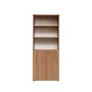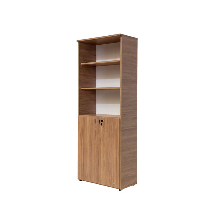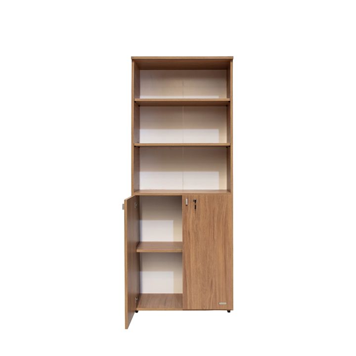 Biblioteca Profesional con dos Puertas Bajas de melamina. Cerradura. Tres estantes regulables y dos Fijos. Tiradores metálicos. Color Acacia (Disponible en otros colores). Medidas: Ancho: 0.75 mts. Alto: 1.88 mts. Profundidad: 0.35 mts. Productos Seleccionado para venta y entrega “EN CAJA”.